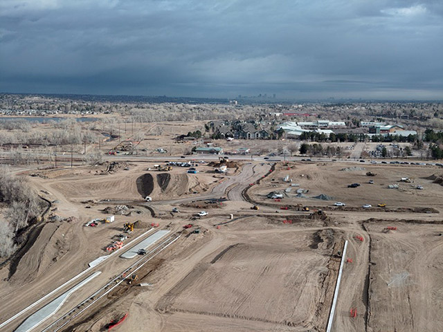 A concrete box culvert on the south side of Mineral Avenue at Platte River Parkway has been installed, and grading, soil preparation, and storm sewer installation for the quadrant road are ongoing. A major traffic shift on to accommodate ongoing construction will be implemented in late February.